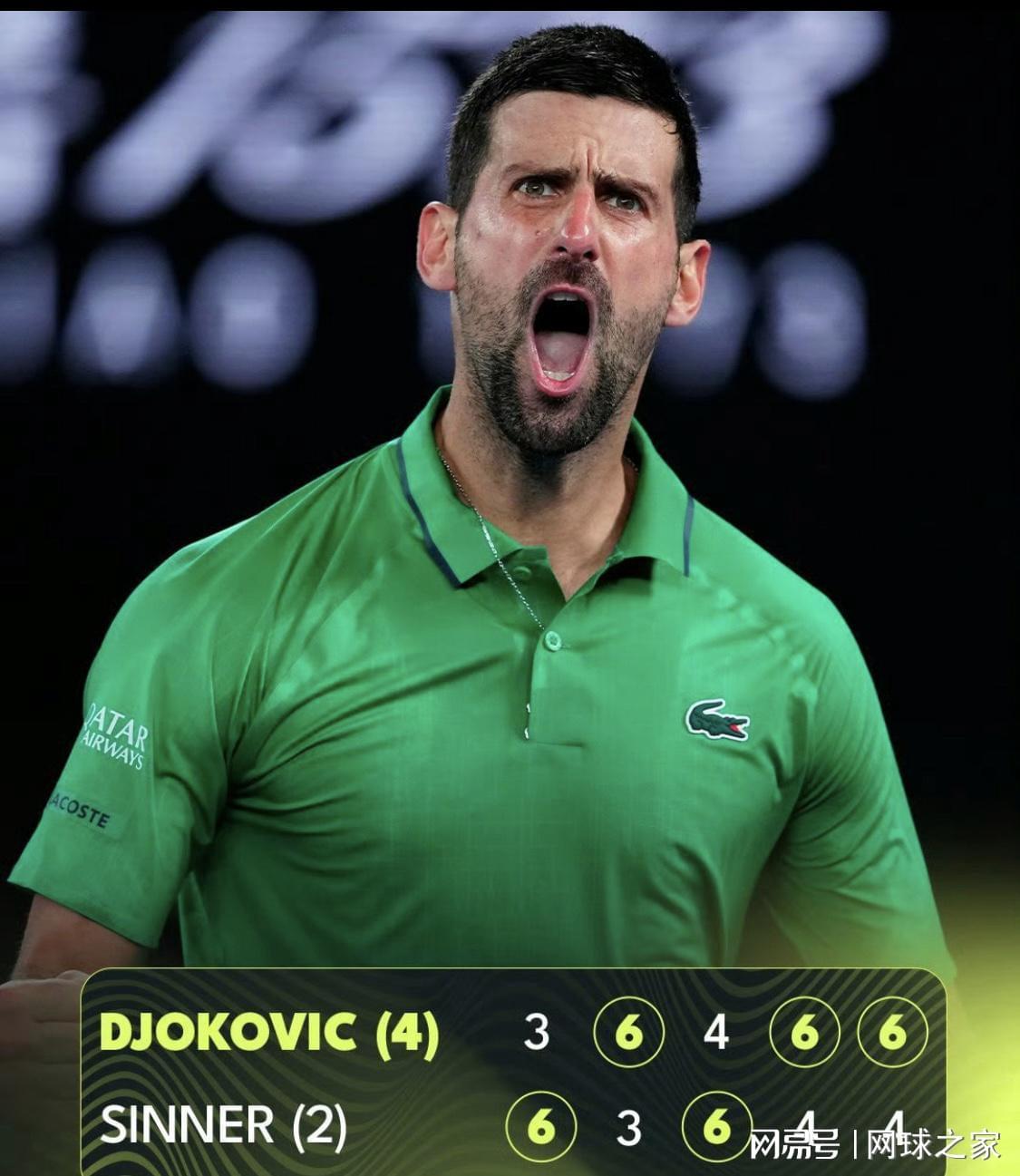 这位塞尔维亚天王不仅终结了对辛纳的五连败,更以38岁255天的年龄成为公开赛时代最年长的澳网男单决赛选手。