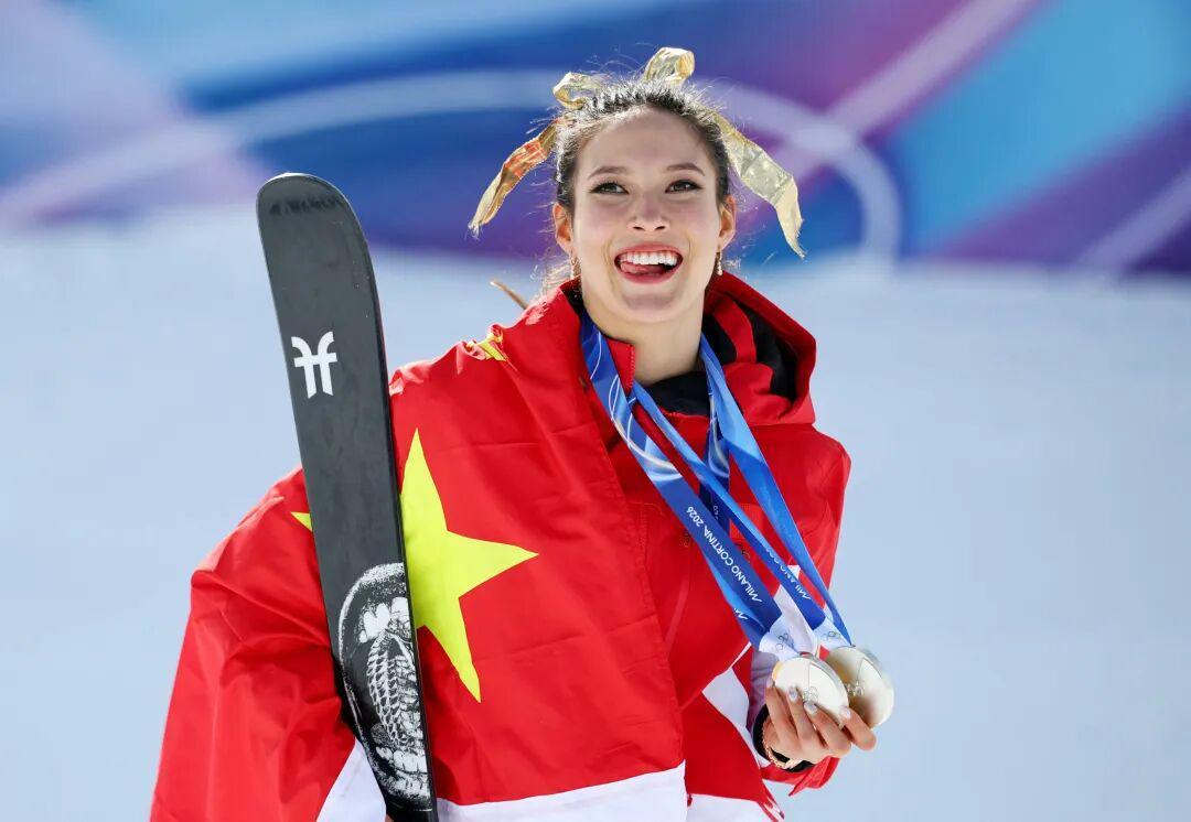 看台上,五星红旗在皑皑白雪的映衬下显得格外鲜艳。全世界的观众都在等待她走上领奖台,等待她在随后的新闻发布会上谈笑风生,分享她作为史上最伟大自由式滑雪运动员的辉煌感言。